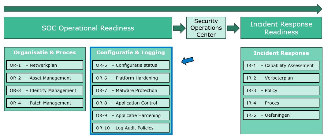 Deze producten hebben betrekking tot het onderwerp "Configuratie & Logging" en is onderdeel van de SOC Operational Readiness miniproducten. De SOC Operational Readiness miniproducten ondersteunen uw organisatie bij de voorbereidingen die nodig zijn voor het optimaal benutten van een SOC(-dienst).